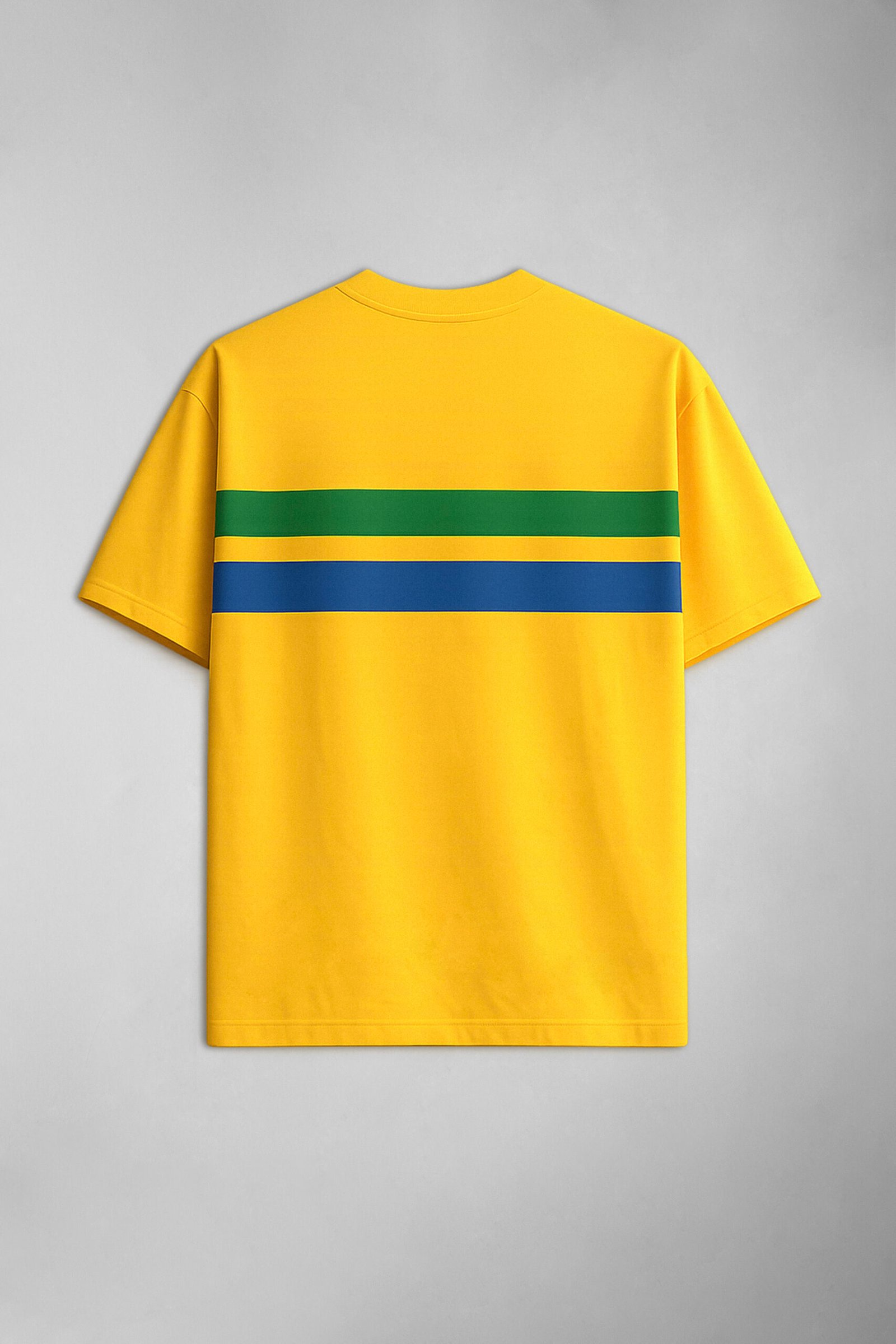 Camiseta amarela oversized confeccionada 100% em algodão fio 26 penteado premium. Gramatura 180gr./m².