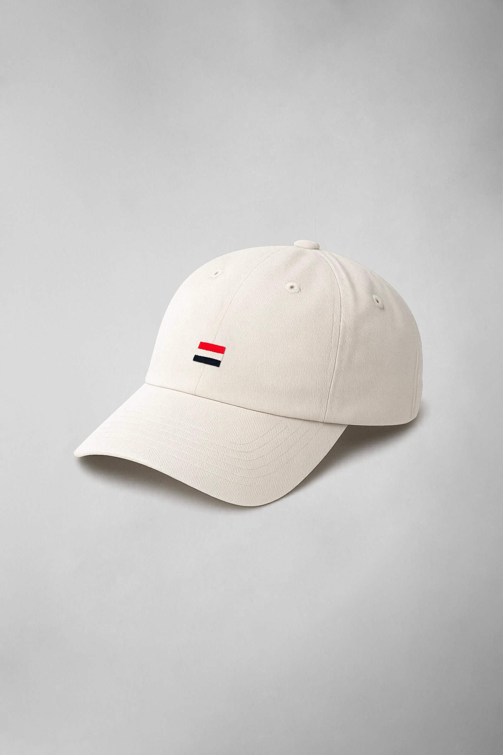 Boné off-white tricolor confeccionado 100% em algodão com bordado frontal.