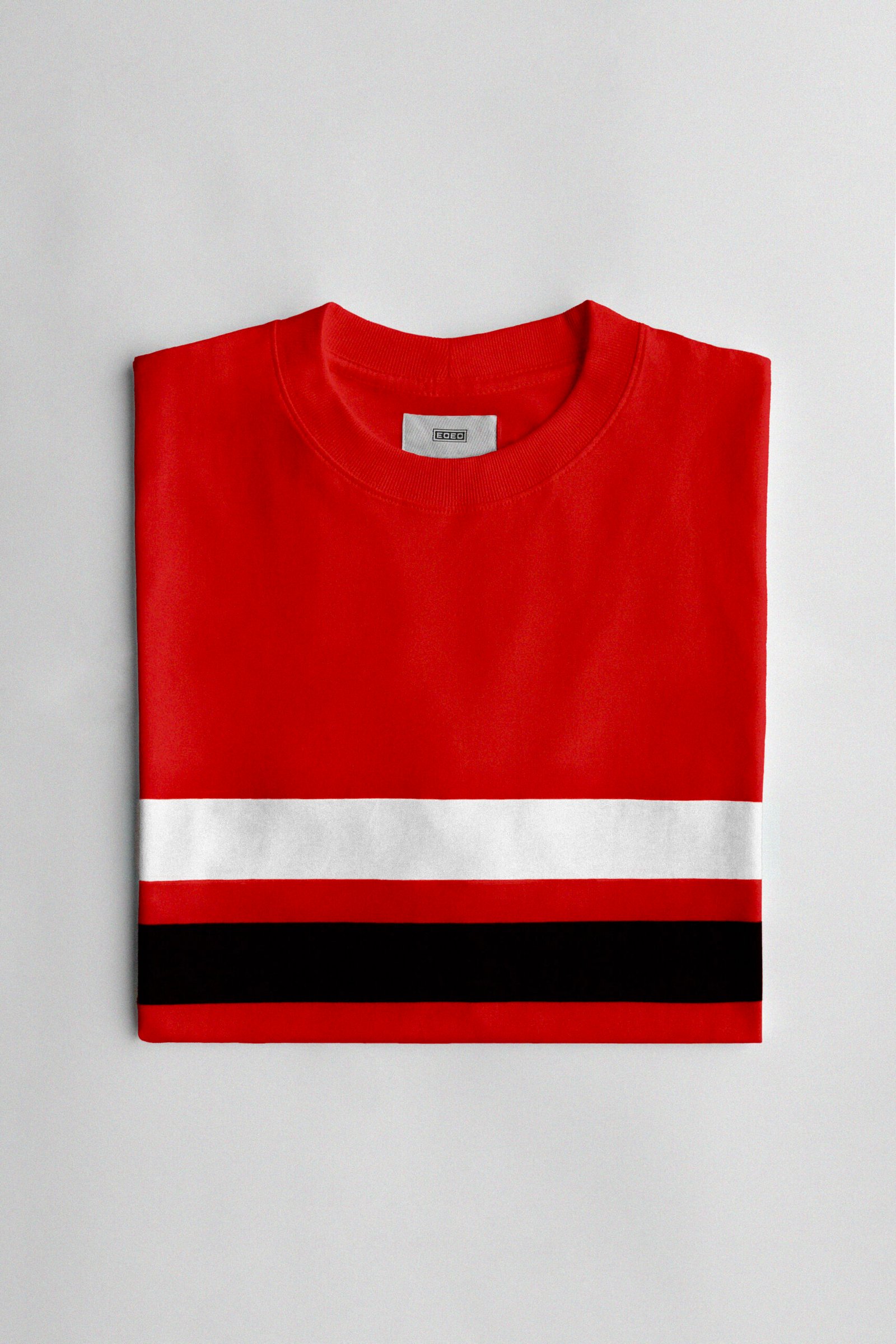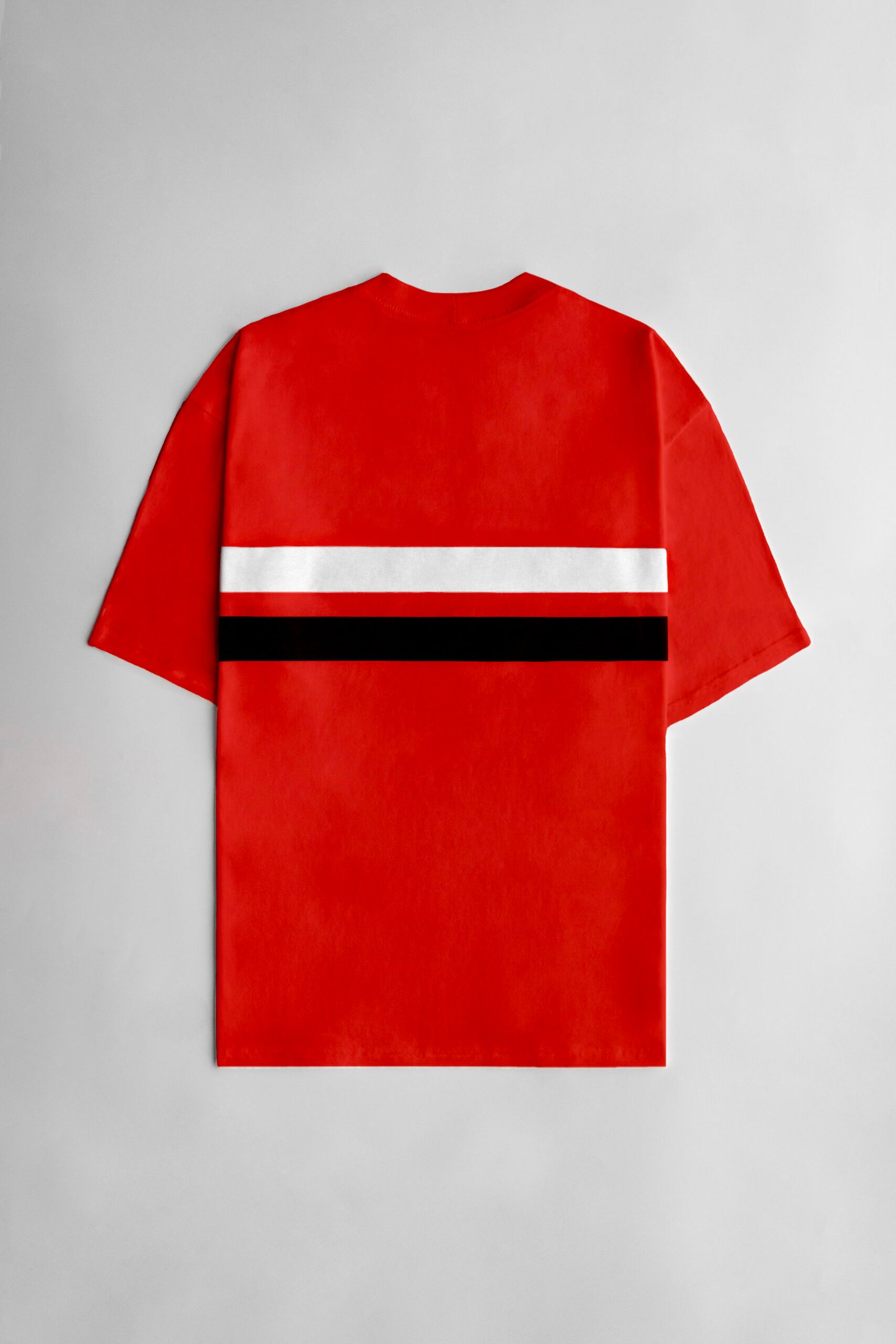 Camiseta vermelha oversized confeccionada 100% em algodão fio 26 penteado premium. Gramatura 180gr./m².